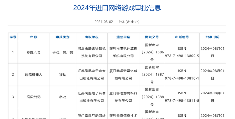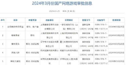 2024年5月国产网络游戏审批版号名单公布